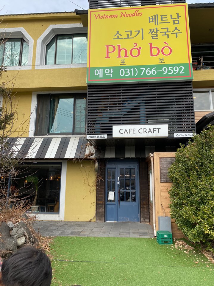 음식점 외부 전경이에요. 2층은 베트남 쌀국수집, 1창은 카페 (CAFE CRAFT) 예요.